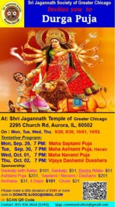 Lots of best wishes on the starting of Navaratri and Durga Puja. May Maa Durga bless us with strength and intellect. We are working hard preparing for the 4 days Durg Puja in Shri Jagannath Temple of Greater Chicago. Visit temple and offer your prayer to Maa Durga. Check the flier below for details.